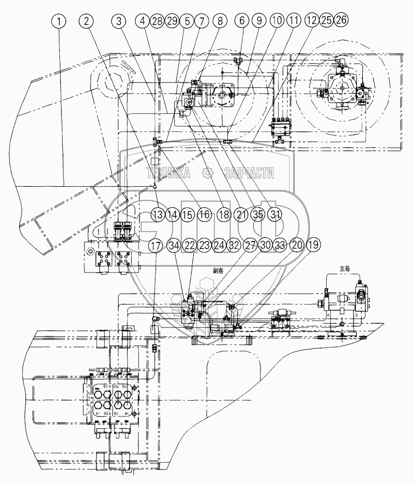 Каталог запасных частей к технике: XCMG QY70K. 08613080 The Auxiliary Winch Pipes