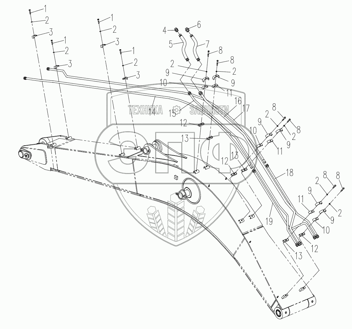 Каталог запасных частей к технике: XCMG XE230. Front Piping