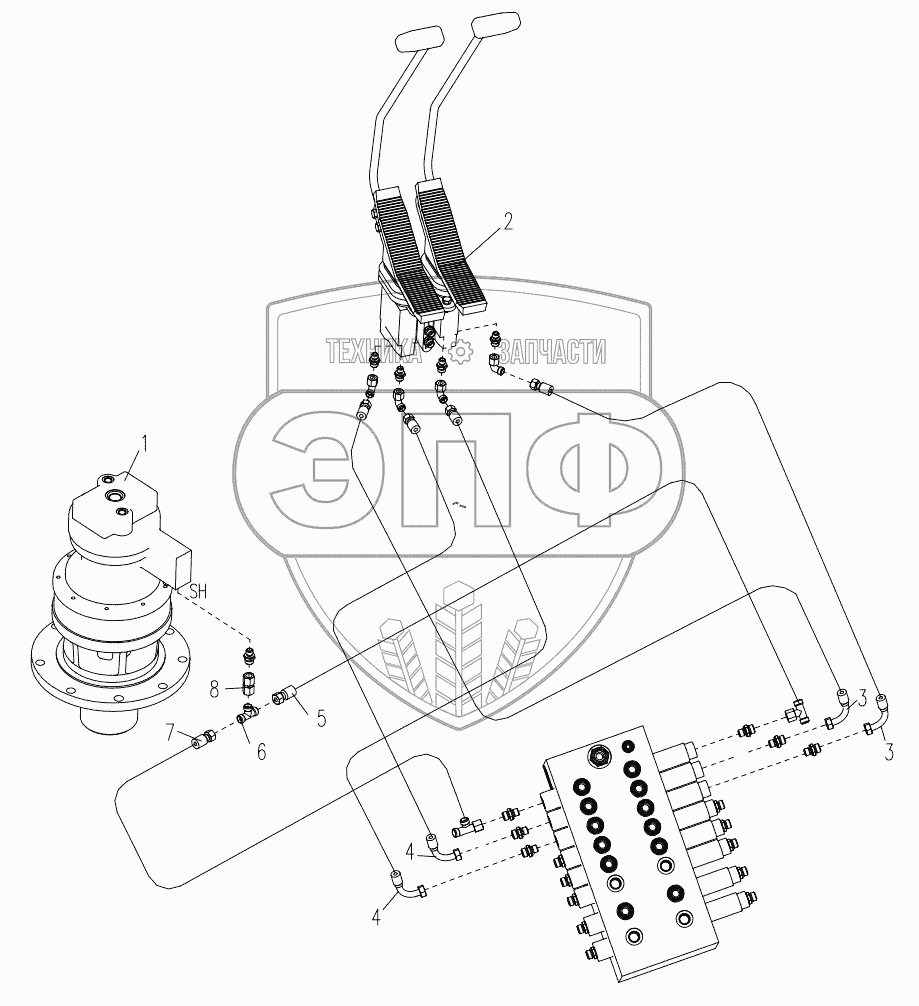 Каталог запасных частей к технике: XCMG XE80. 310400209 Pilot Hydraulic Piping