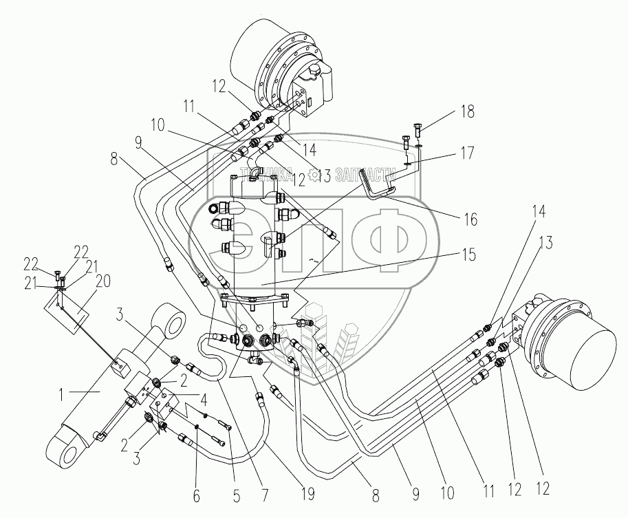 Каталог запасных частей к технике: XCMG XE80. 310400302 Base Hydraulic Piping