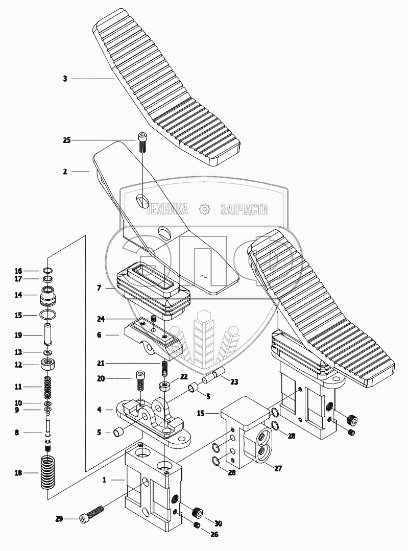 Каталог запасных частей к технике: XCMG XE80. 803007190 Pedal Pilot Valve