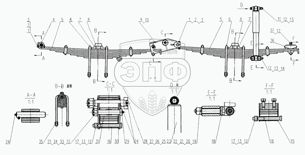 Каталог запасных частей к технике: XCMG XZ16K-XZ50K. XZ35K.55 Front Suspension