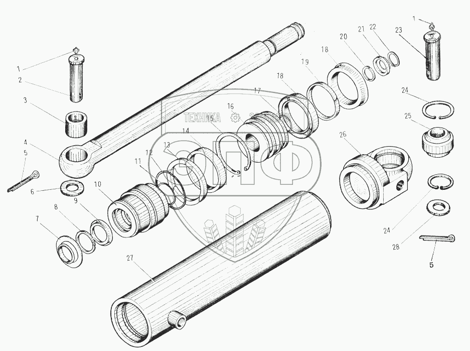 Каталог запасных частей к технике: XCMG YL16 (YL20). YL16 Hydraulic Cylinder