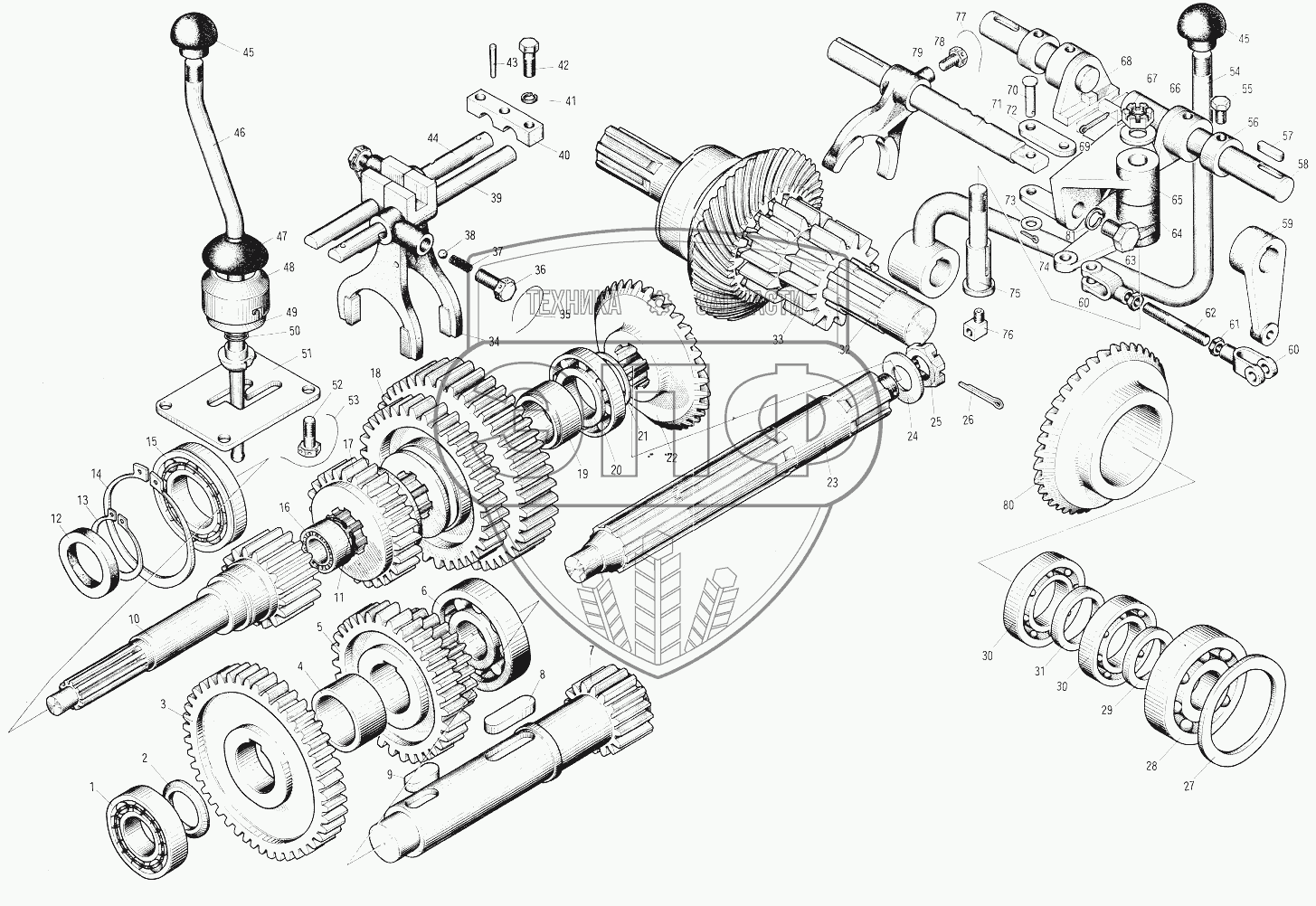 Каталог запасных частей к технике: XCMG YL16 (YL20). YL20 Gear and Reverse Control Mechanism