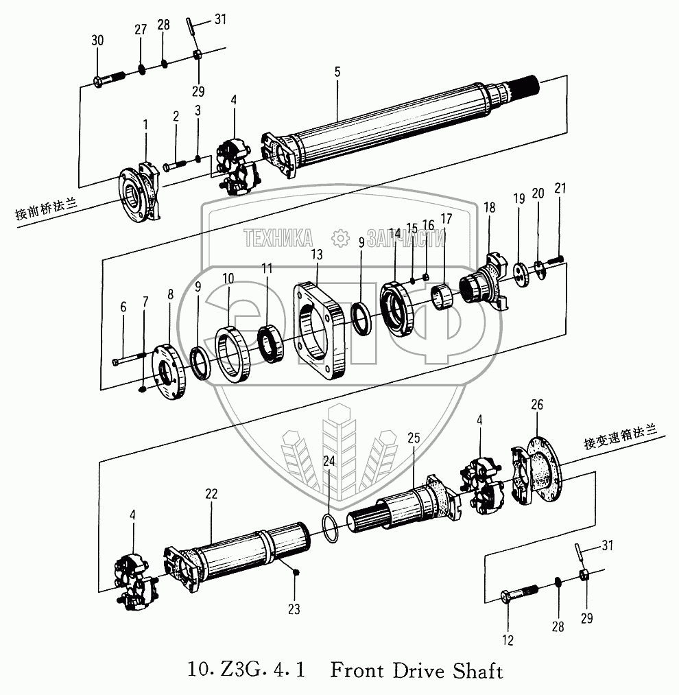 Каталог запасных частей к технике: XCMG ZL30G. Вал привода переднего моста