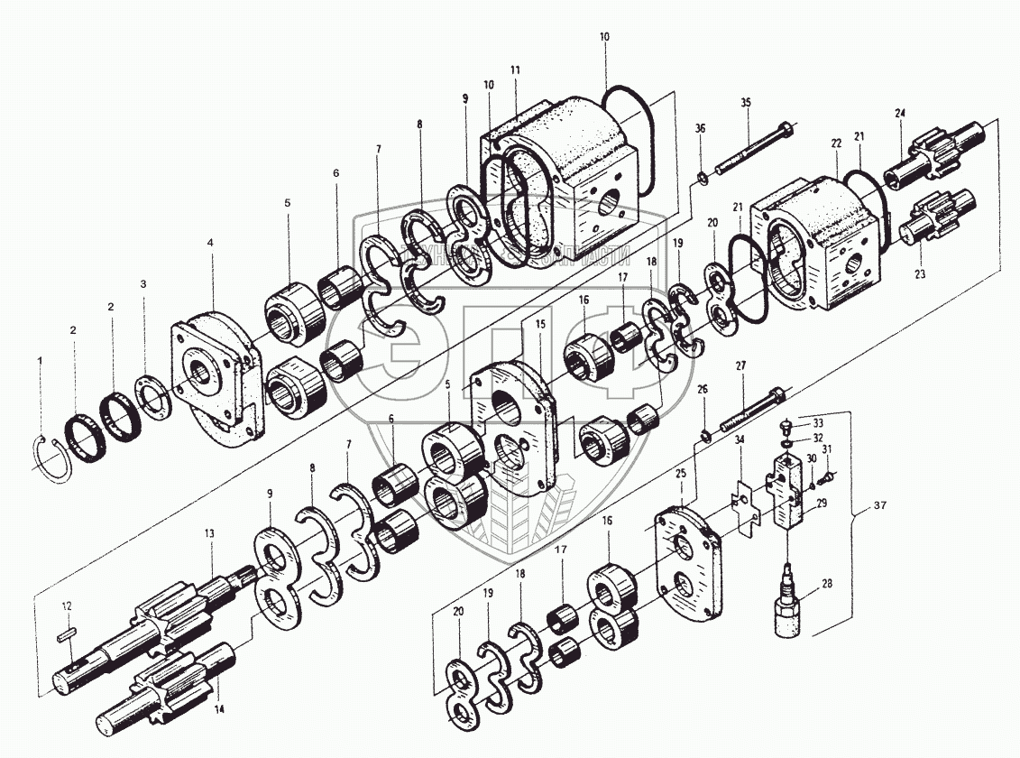 Каталог запасных частей к технике: XCMG ZL50G. Сдвоенный шестеренный насос