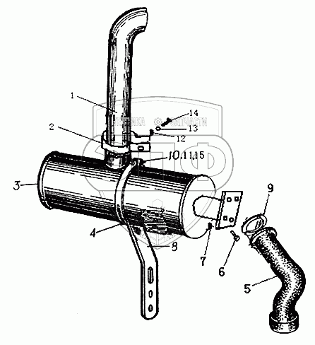 Каталог запасных частей к технике: Xiamen XZ636. Установка глушителя