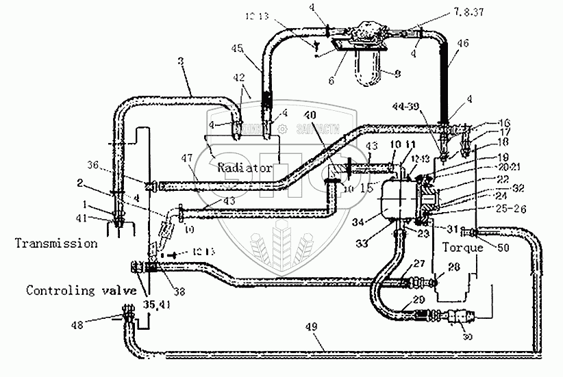 Каталог запасных частей к технике: Xiamen XZ636. Установка трансмиссионной гидравлической системы