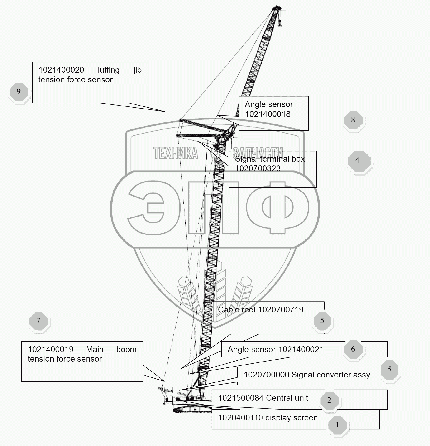 | 7 | 1021400019 | Main boom tension force sensor | Нет на складе | |