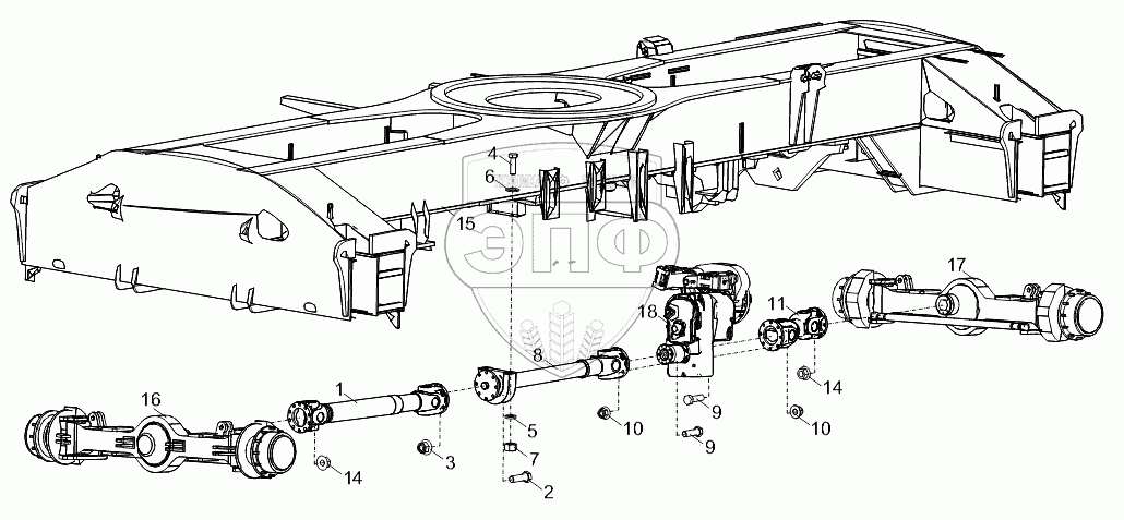 Каталог запасных частей к технике: Zoomlion RT-551 (4x4). PROPELLER SHAFT LAYOUT D00757912200000000Y