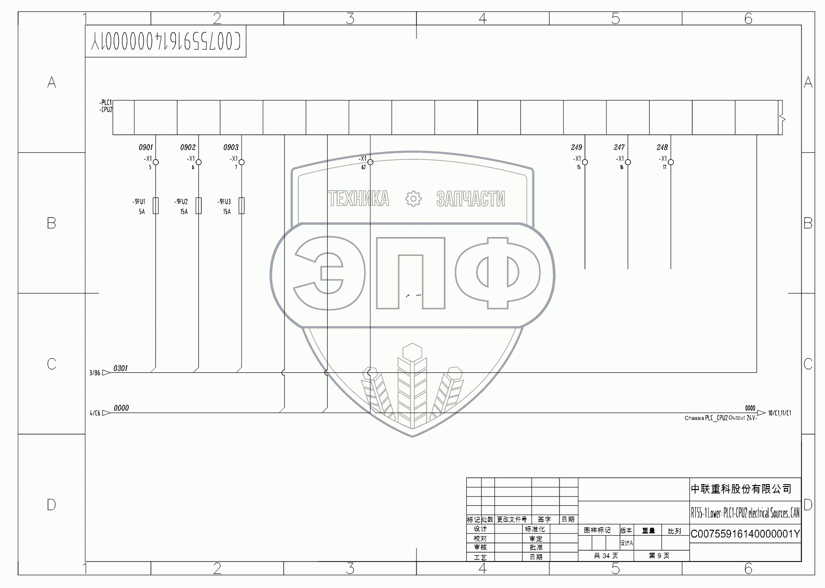 Каталог запасных частей к технике: Zoomlion RT-55. SCHEMATIC DIAGRAM - ELECTRICAL SYSTEM (HIRSCHMANN) D00755916140000001Y