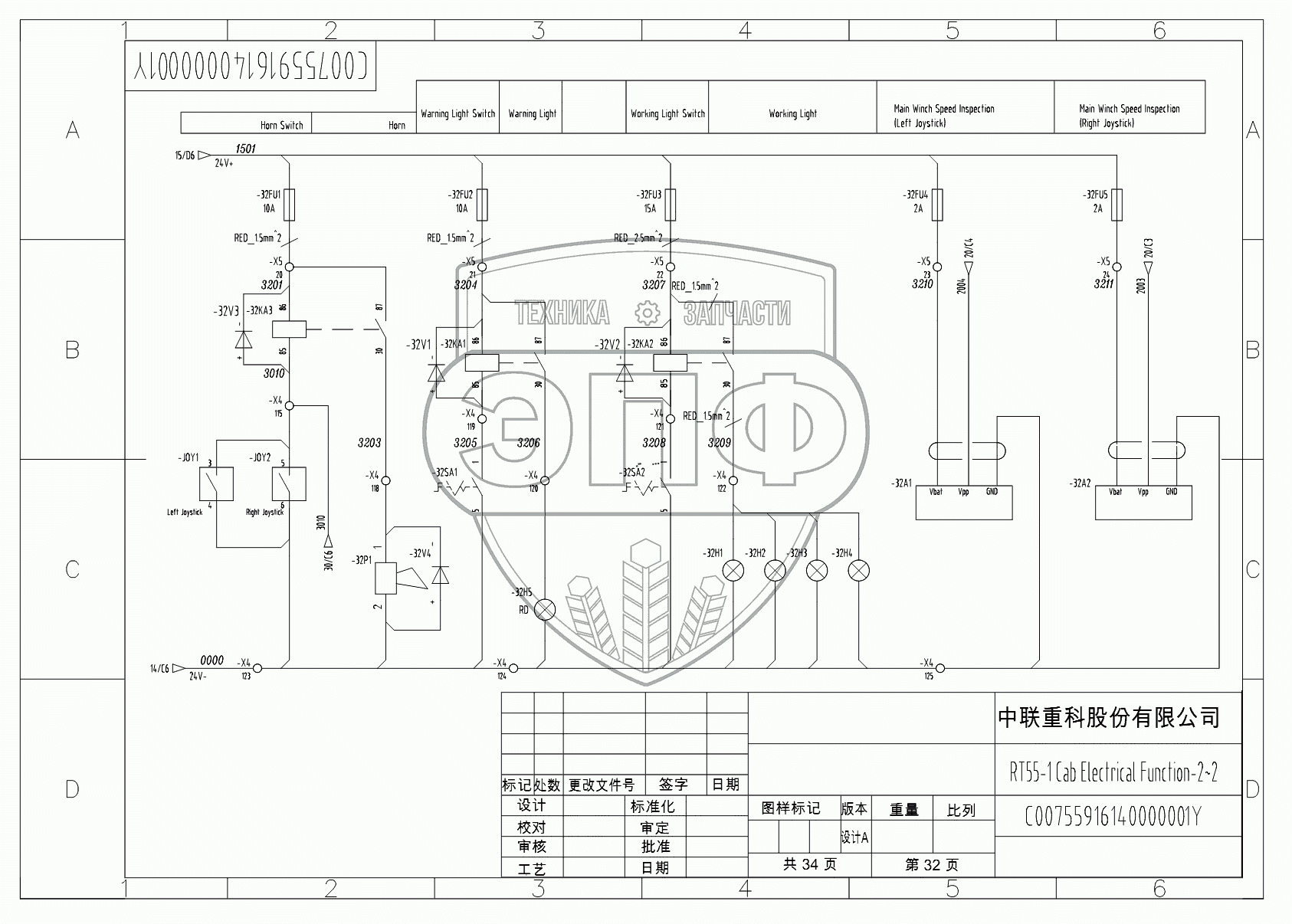 Каталог запасных частей к технике: Zoomlion RT-55. SCHEMATIC DIAGRAM - ELECTRICAL SYSTEM (HIRSCHMANN) D00755916140000001Y