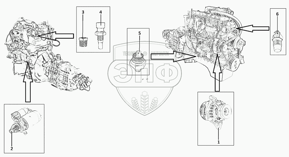 Каталог запасных частей к технике: ЗЗГТ ГАЗ-34039 (Ирбис). Электрооборудование двигателя