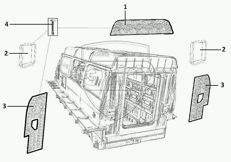 Каталог запасных частей к технике: ЗЗГТ ГАЗ-34039 (Ирбис). Обивка задней части