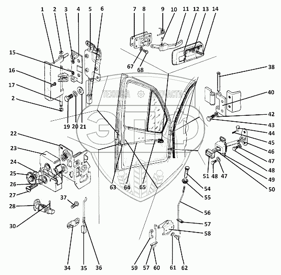 Каталог запасных частей к технике: ЗЗГТ ГАЗ-34039 (Ирбис). Замки, петли