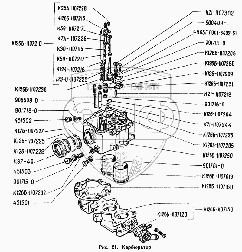 Каталог запасных частей к технике: ЗЗГТ ГАЗ-71. Карбюратор