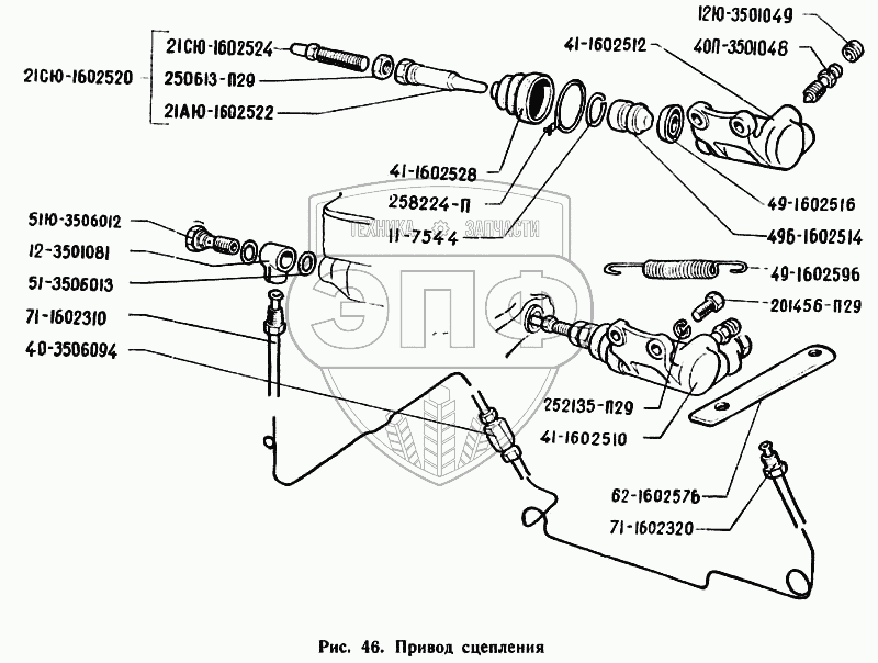 Каталог запасных частей к технике: ЗЗГТ ГАЗ-71. Привод сцепления