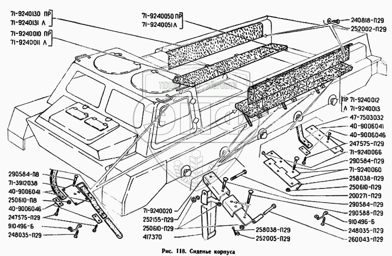 Каталог запасных частей к технике: ЗЗГТ ГАЗ-71. Сиденье корпуса
